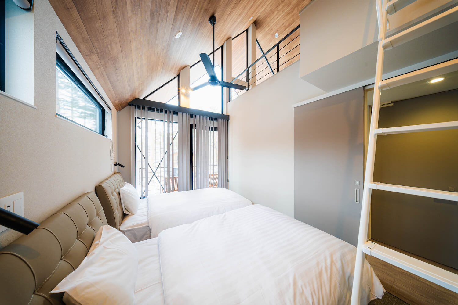 Each wing includes its own loft, attached to a bedroom, which can comfortably serve as an additional sleeping area or children’s space.