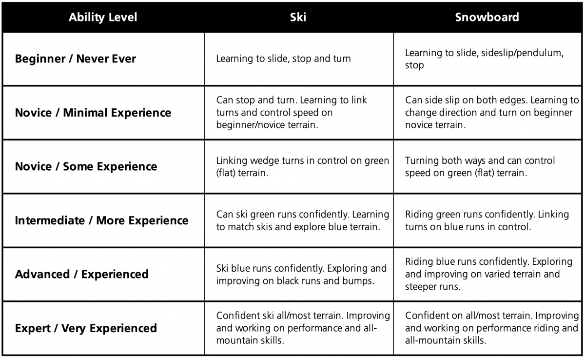 - Ski and snowboard private lessons must be booked separately